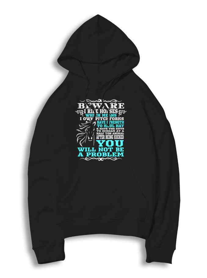 Beware I Ride Horses Quote Hoodie: