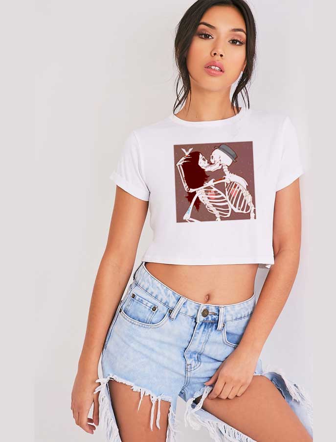 Calaveras Skeleton Couple Kiss Halloween Crop Top Shirt – Cheap Custom Crop Top Shirt In USA – Best Product Crop Top Shirts