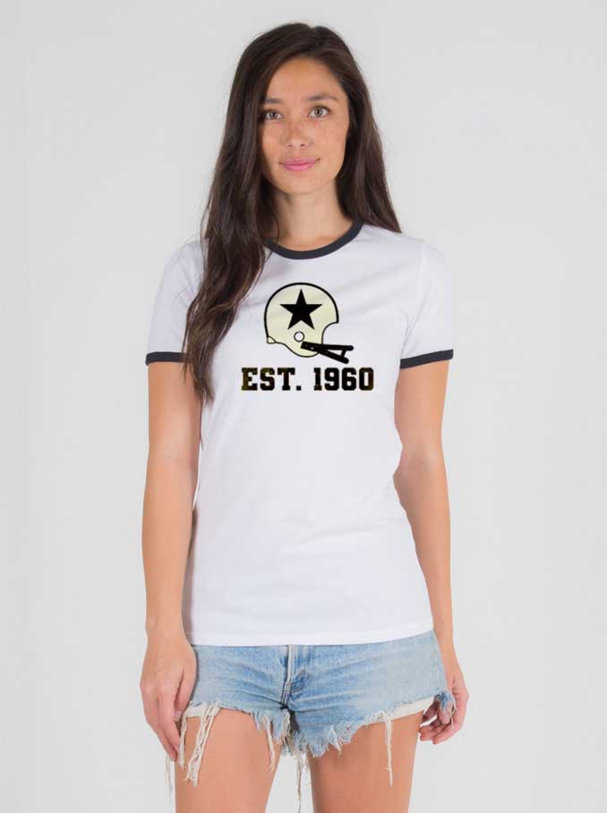 Cowboys Est 1960 Helmet With Star Ringer Tee For Women’s or Men’s – Unisex Ringer T Shirt – Best Custom Ringer Tee in USA