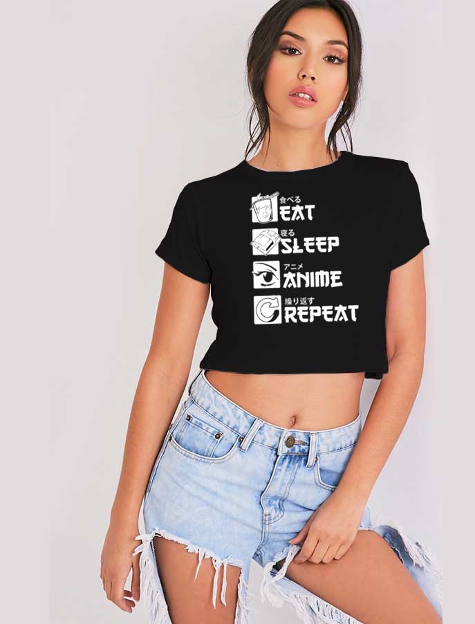 Eat Sleep Anime Repeat Japanese Crop Top Shirt – Cheap Custom Crop Top Shirt In USA – Best Product Crop Top Shirts