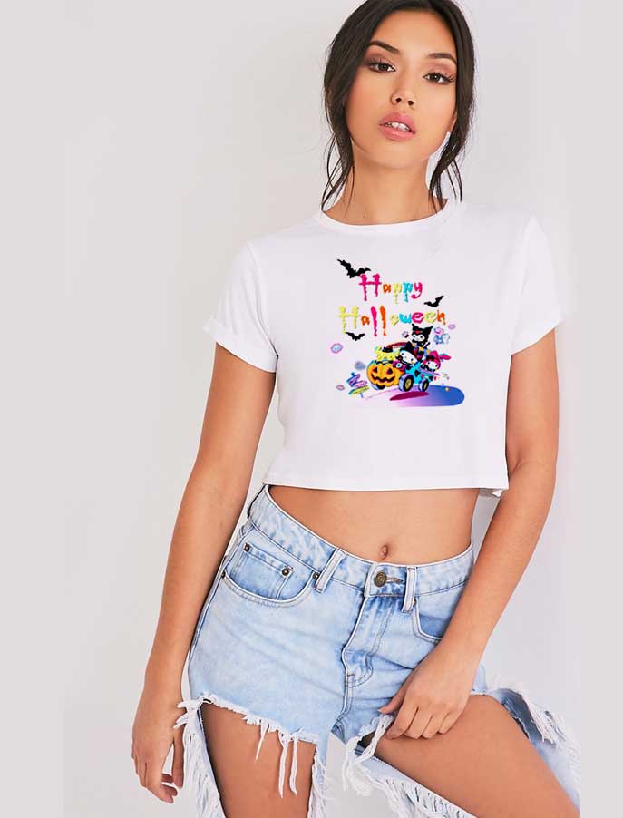 Happy Halloween Hello Kitty Pumpkin Car Crop Top Shirt – Cheap Custom Crop Top Shirt In USA – Best Product Crop Top Shirts