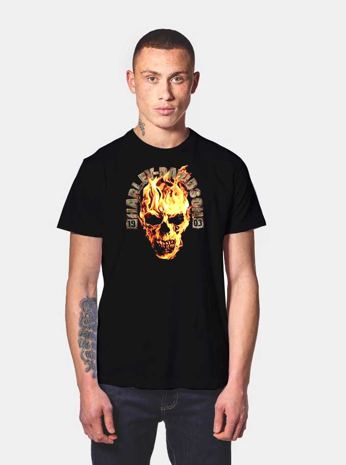 Harley Davidson 1903 Blazing Skull Logo T Shirt