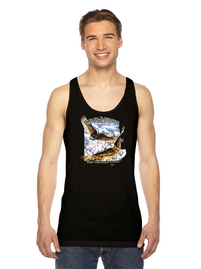 Casual clothing quickly takes over the fashion world of women and men. Women and men everywhere are looking for ways to look fashionable while feeling comfortable at the same time. Harley Davidson Keep The Eagle Flying Tank Top is the perfect summer clothing solution. Are you interested in rejuvenating a slightly outdated wardrobe, adding a little color to your wardrobe? Top tanks allow you to feel cooler in warm weather and they have become very fashionable for years.