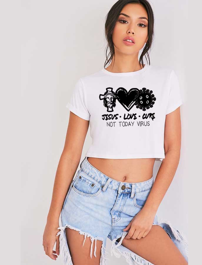 Jesus Love Cure Not Today Virus Crop Top Shirt – Cheap Custom Crop Top Shirt In USA – Best Product Crop Top Shirts