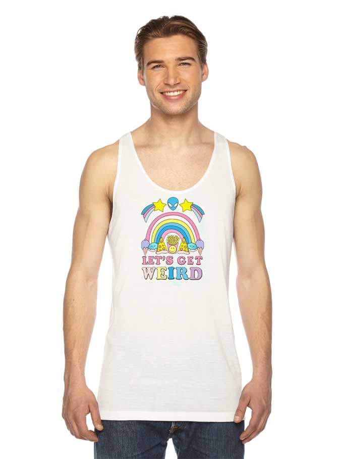 Casual clothing quickly takes over the fashion world of women and men. Women and men everywhere are looking for ways to look fashionable while feeling comfortable at the same time. Let’s Get Weird Alien Pizza Rainbow Tank Top is the perfect summer clothing solution. Are you interested in rejuvenating a slightly outdated wardrobe, adding a little color to your wardrobe? Top tanks allow you to feel cooler in warm weather and they have become very fashionable for years.