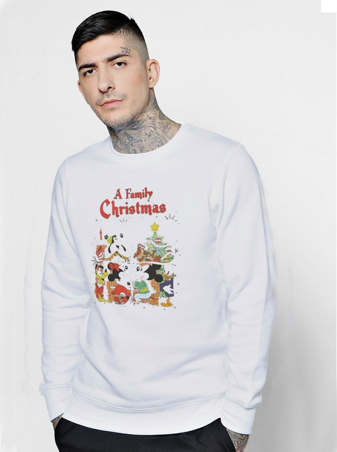 Mickey And Friends Family Christmas Sweatshirt heavy cotton tee is the fundamental staple of any wardrobe. It is the inspiration upon which informal style grows. All it desires is a customised layout to raise matters to profitability. The uniqueness spun fibers offer a clean floor for top class printing vividity and sharpness. No aspect seams imply there aren’t anyt any itchy interruptions below the arms. The shoulders have tape for advanced durability.