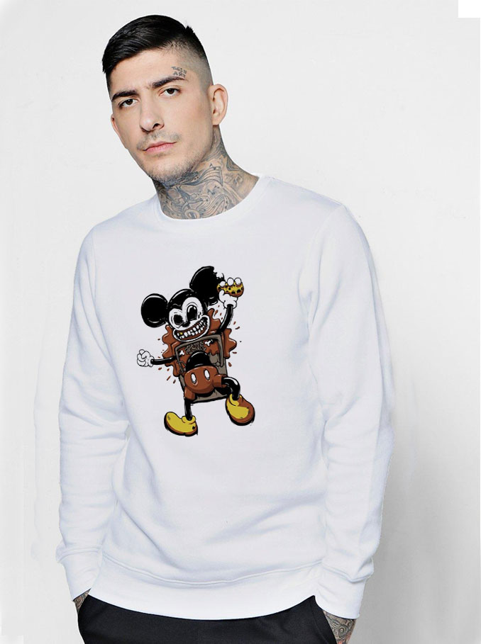 Mickey Parody Rock And Roll Sweatshirt heavy cotton tee is the fundamental staple of any wardrobe. It is the inspiration upon which informal style grows. All it desires is a customised layout to raise matters to profitability. The uniqueness spun fibers offer a clean floor for top class printing vividity and sharpness. No aspect seams imply there aren’t anyt any itchy interruptions below the arms. The shoulders have tape for advanced durability.