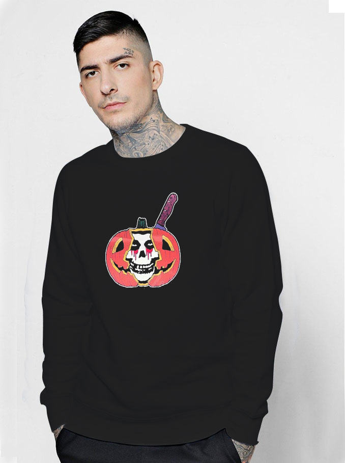 Trend Fashion Misfits Halloween Jack o Lantern With Knife Sweatshirt Custom t shirt, hoodies, sweatshirts, tank tops, and other by Apparelhouses.com