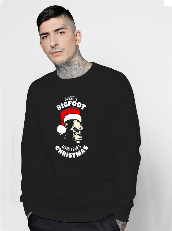 Monkey With Santa Hat Just A Bigfoot Christmas Sweatshirt heavy cotton tee is the fundamental staple of any wardrobe. It is the inspiration upon which informal style grows. All it desires is a customised layout to raise matters to profitability. The uniqueness spun fibers offer a clean floor for top class printing vividity and sharpness. No aspect seams imply there aren’t anyt any itchy interruptions below the arms. The shoulders have tape for advanced durability.