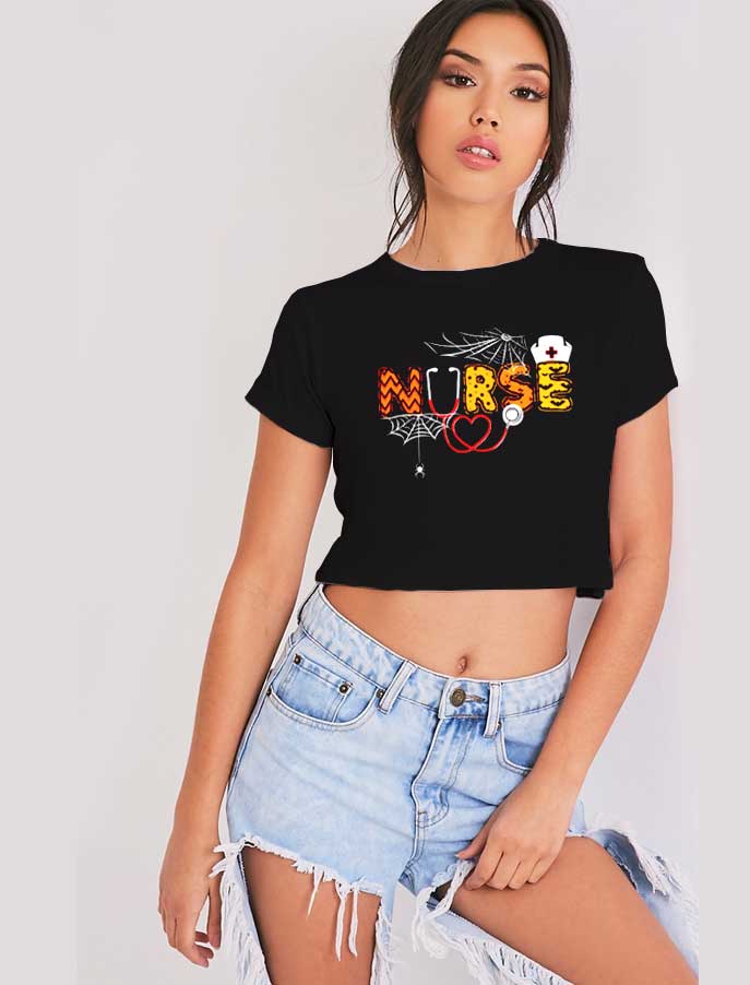 Nurse Halloween Pumpkin Boo Spider Crop Top Shirt – Cheap Custom Crop Top Shirt In USA – Best Product Crop Top Shirts
