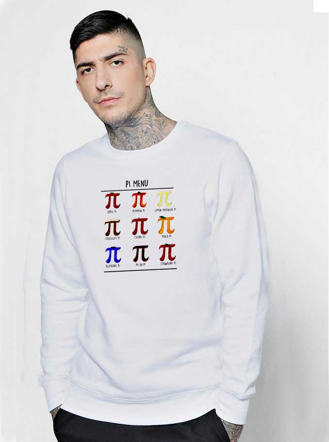 This sweatshirt is Made To Order. We use DTG Technology to print on to Pi Menu Chart Fruit Pie Day Sweatshirt