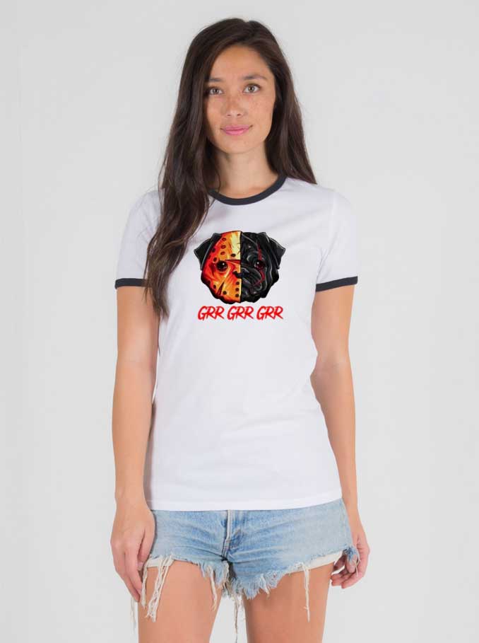 Pug Dog Wear Jason Mask Halloween Horror Ringer Tee For Women’s or Men’s – Unisex Ringer T Shirt – Best Custom Ringer Tee in USA