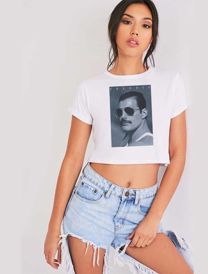 Queen Freddie Mercury In Shades Photo Crop Top Shirt – Cheap Custom Crop Top Shirt In USA – Best Product Crop Top Shirts