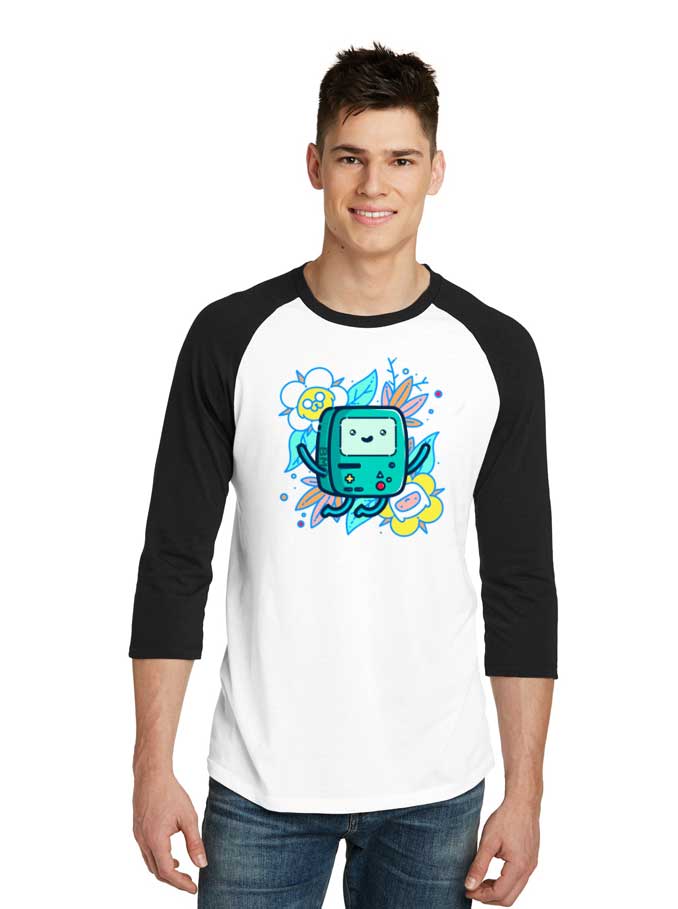 Retro BMO Adventure Time Cartoon Raglan Tee – Custom 3/4-Sleeve Raglan Tee – Raglan Tee For Women’s Or Men’s