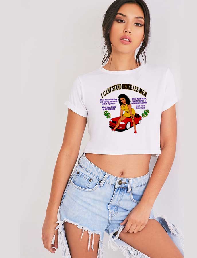 Retro I Can’t Stand Broke Ass Men Quote Crop Top Shirt