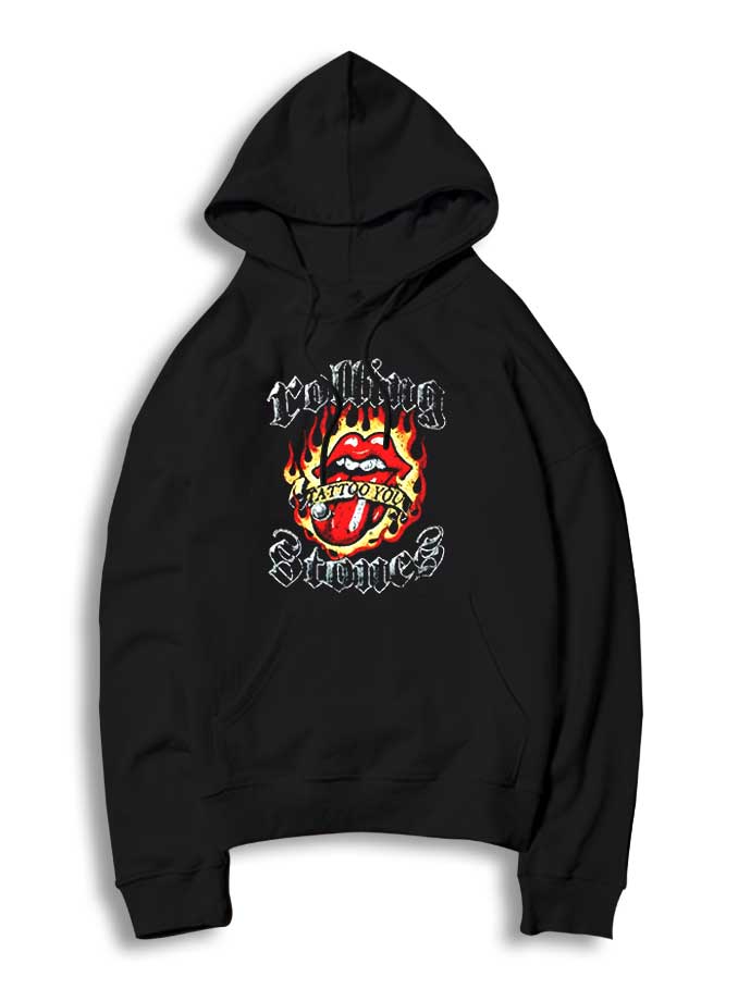 Rolling Stones Flaming Tattoo Tongue Hoodie :
