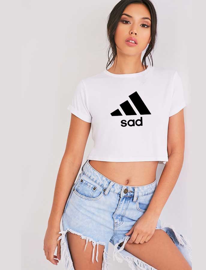 Sad Adidas Logo Inspired Parody Crop Top Shirt – Cheap Custom Crop Top Shirt In USA – Best Product Crop Top Shirts