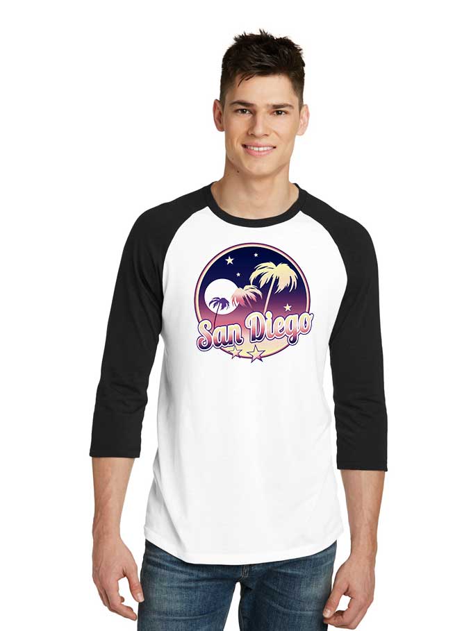 San Diego California Night Retro Raglan Tee