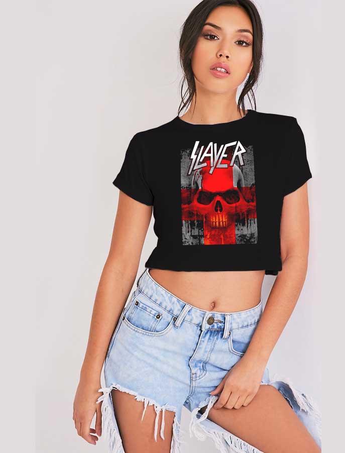 Slayer Bloody Flag Skull Cross Crop Top Shirt – Cheap Custom Crop Top Shirt In USA – Best Product Crop Top Shirts