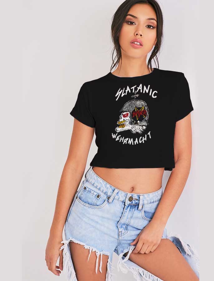 Slayer Slatanic Wehrmacht Skull Crop Top Shirt – Cheap Custom Crop Top Shirt In USA – Best Product Crop Top Shirts