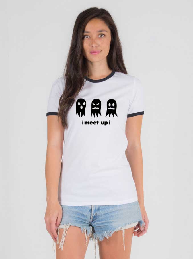 Spooky Scary Ghost Meet Up Halloween Ringer Tee For Women’s or Men’s – Unisex Ringer T Shirt – Best Custom Ringer Tee in USA