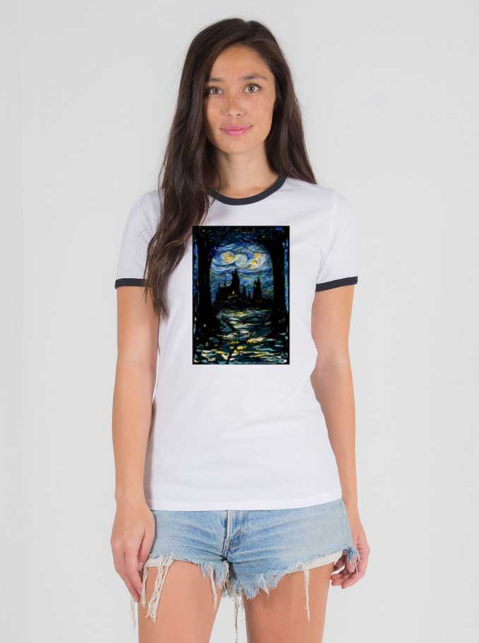 Welcome to Our T Shirt Categories, we produce high-quality shirts with great designs in the world. This stop stressing Wear Make Starry Night Stars Over Hogwarts School Ringer Tee For Women’s or Men’s is made with material premium quality cotton for a great quality soft feel and comfortable retail fit. Our soft textile flex print gives a really high-end finish to any striking design. This high-quality print will not crack or fade which ensures your garment stays looking fantastic. The stuff comfortable and easy to wear. If you are going for brunch or a run, visiting your parents or heading out of town. Jet-setting, hiking, coffee drinking, book reading or biking.