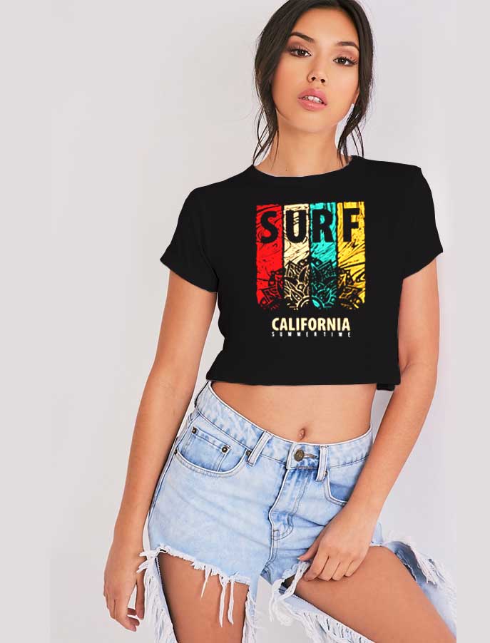 Surf California Summertime Flower Logo Crop Top Shirt – Cheap Custom Crop Top Shirt In USA – Best Product Crop Top Shirts