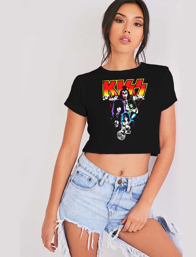 Vintage Kiss Band Neon Logo Crop Top Shirt – Cheap Custom Crop Top Shirt In USA – Best Product Crop Top Shirts