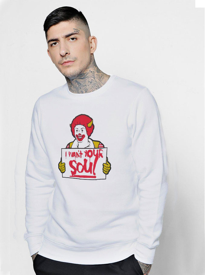 Trend Fashion Vintage Ronald McDonald I Want Your Soul Sweatshirt Custom t shirt, hoodies, sweatshirts, tank tops, and other by Apparelhouses.com