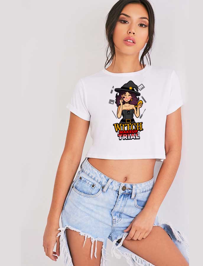 Witch Makeup Trial Halloween Crop Top Shirt – Cheap Custom Crop Top Shirt In USA – Best Product Crop Top Shirts